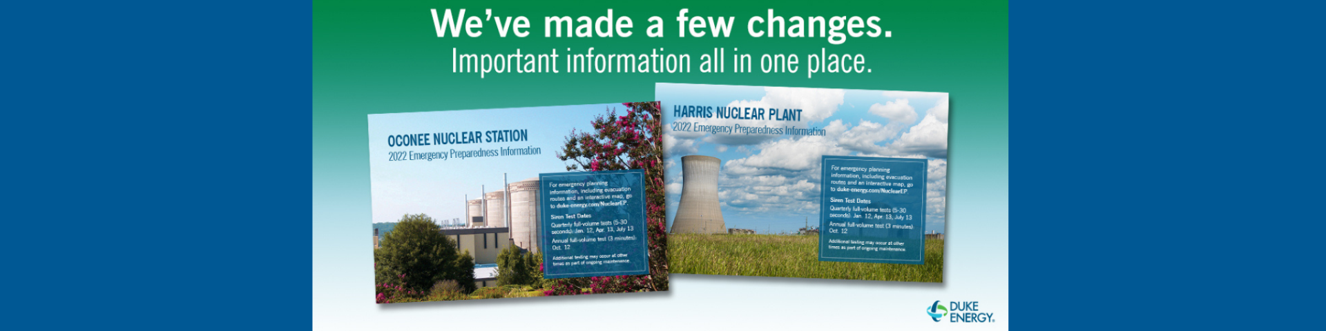 How community members find information is changing – so we’re changing the way we deliver it. We are mailing postcards to residents living within 10 miles of our nuclear plants with a link to our updated website, duke-energy.com/nuclearep.